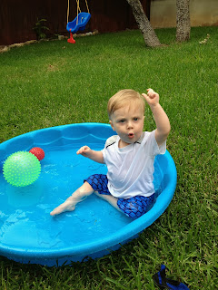 I'm very far behind with all of my post, but I am catching up. This summer we spent a lot of time in our backyard. Wyatt loves to be outside in the fresh air. Following the dogs, blowing bubbles, swinging, and going in the pool are just some of Wyatt's favorite outside activities.